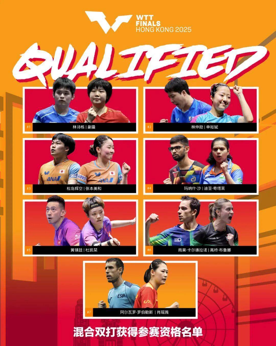 WTT香港总决赛2025将于12月10日至14日 r在中国香港红磡体育馆举行 r跟着WTT球星挑战跑马斯喀特站戒指 r赢得男女单打参赛经验名单一经笃定 r混双也仅剩外卡限额尚待公布 r来看具体参赛经验名单 r↓↓↓ rrrr女子单打 rrrr