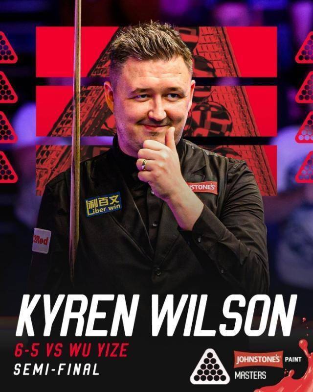 2025斯诺克专家赛半决赛,威尔逊6比5驯服吴宜泽,与希金斯会师决赛。全场比赛凯伦·威尔逊打出一杆破百(111)和两杆50+(76、74),吴宜泽打出五杆50+(75、69、74、87、58)半场事后两边战成2比2平,中场休息后凯伦·威尔逊连胜两局跳动,吴宜泽连胜三局最初到达赛点,两边战至决胜局,决胜局中凯伦·威尔逊打出破百拿下比赛最终凯伦·威尔逊6比5驯服吴宜泽晋级决赛,他将在决赛对阵约翰·希金斯。